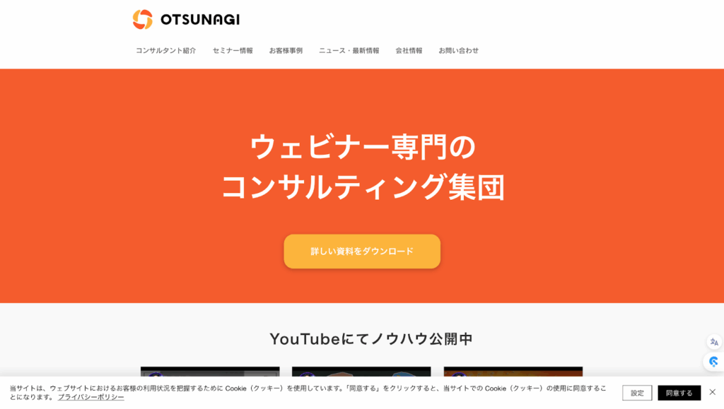 OTSUNAGI株式会社は、年間100件以上のオンラインイベントを支援するウェビナー運営のプロフェッショナル集団です。企画設計から集客代行、Zoomの設定〜当日の配信オペレーション、アーカイブ活用、さらには共催企業とのマッチングまで、成果に直結するウェビナー施策を一気通貫でご支援いたします。