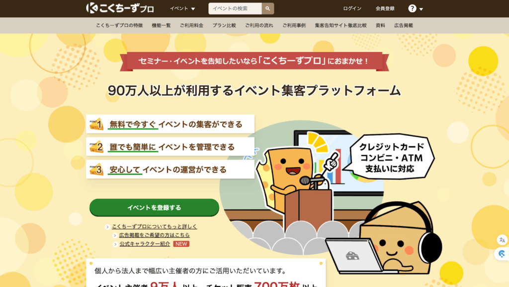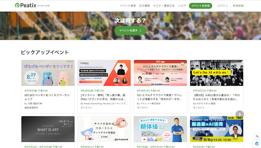 掲載無料・SEO強化済。オンラインイベント対応、決済機能も備えるため幅広いジャンルで集客可能。手軽さと集客力を両立します。
