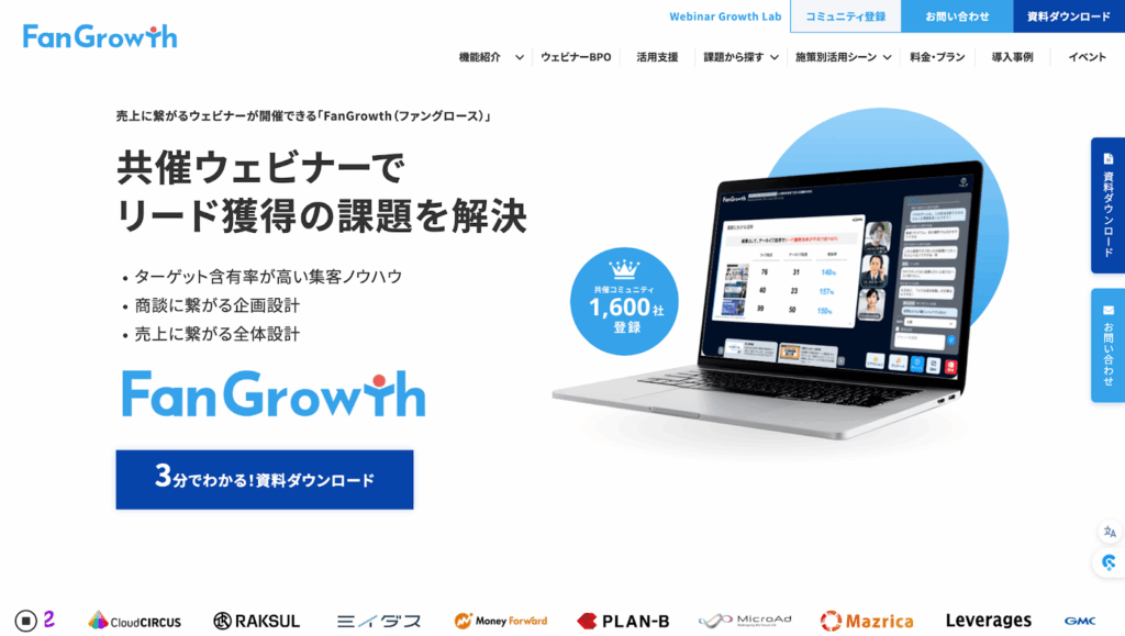 共催ウェビナーによるリード獲得に強く、1600社超の共催コミュニティを活用。
